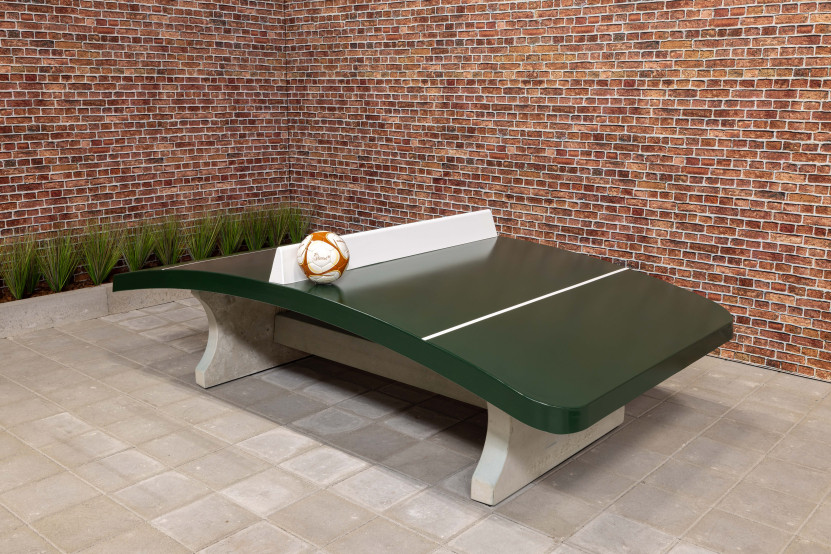 Wir stellen die allseits bekannte Tischtennisplatte auch mit einer gewölbten Platte her. Darauf lassen sich die unterschiedlichsten Spiele spielen, darunter auch das Teqball.